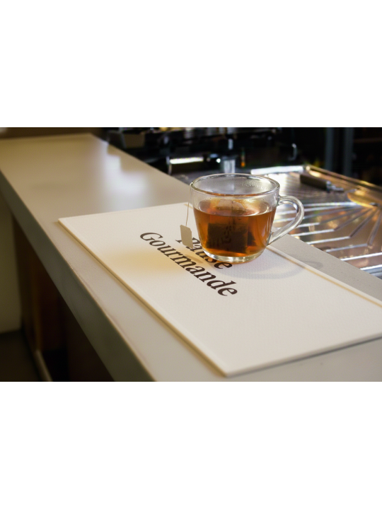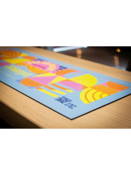 Ce tapis est recommandé pour une utilisation promotionnelle dans les bars, les comptoirs et tous les points de contact avec la clientèle. Sa surface entièrement imprimable en couleur se nettoie facilement et permet de mettre en valeur des visuels de qualité photographique. Il est idéal pour des applications sur le comptoir avec des commandes même en petites quantités, et sa production rapide permet de répondre rapidement aux besoins promotionnels.