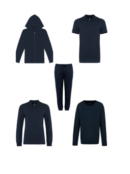 Le tee-shirt et le sweat sont conçus à base de coton biologique. Le reste du kit est en matière souple et résistante à base de coton.